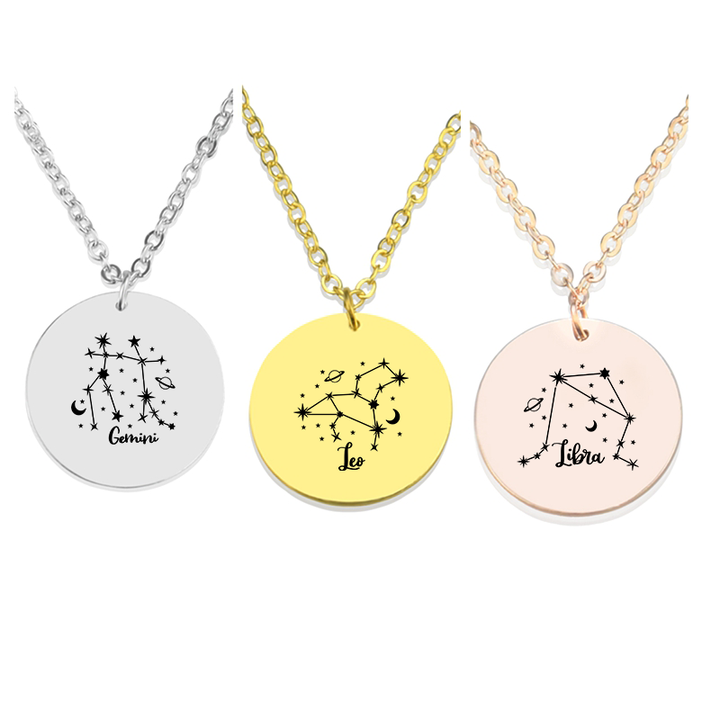 Colgante circular de 12 constelaciones para hombre y mujer, Horóscopo de la suerte, joyería grabada, ajustable, acero inoxidable, signo del zodiaco, collar