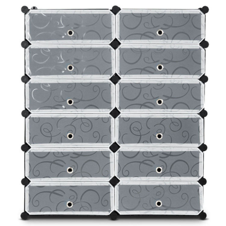 Zapatero de plástico de 12 cubos con puertas transparentes, contenedores de almacenamiento apilables para sala de estar, diseño minimalista
