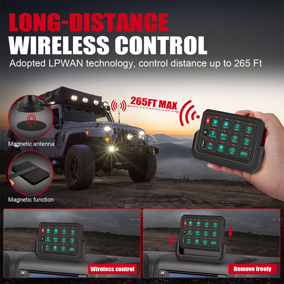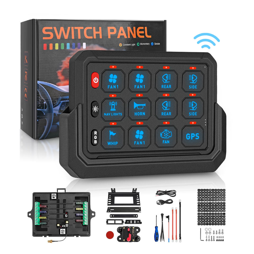 Panel de interruptor de 12 bandas, Control inalámbrico RGB, IP65, resistente al agua, 3 modos de iluminación, Material de aluminio para camión, todoterreno, barco, coche, RV