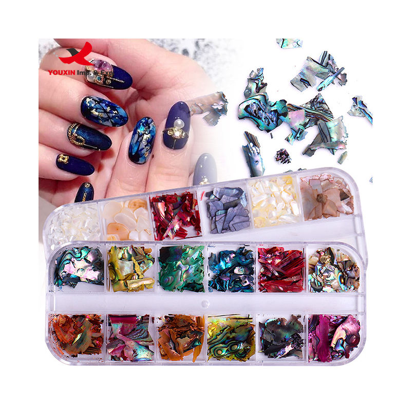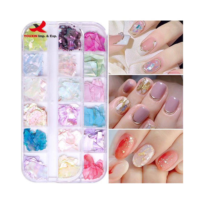 12 Rejillas de Virutas de Concha de Abulón Irregulares, Escamas Brillantes Naturales, Fragmentos de Concha Marina para Decoración de Uñas, Manualidades y Manicura