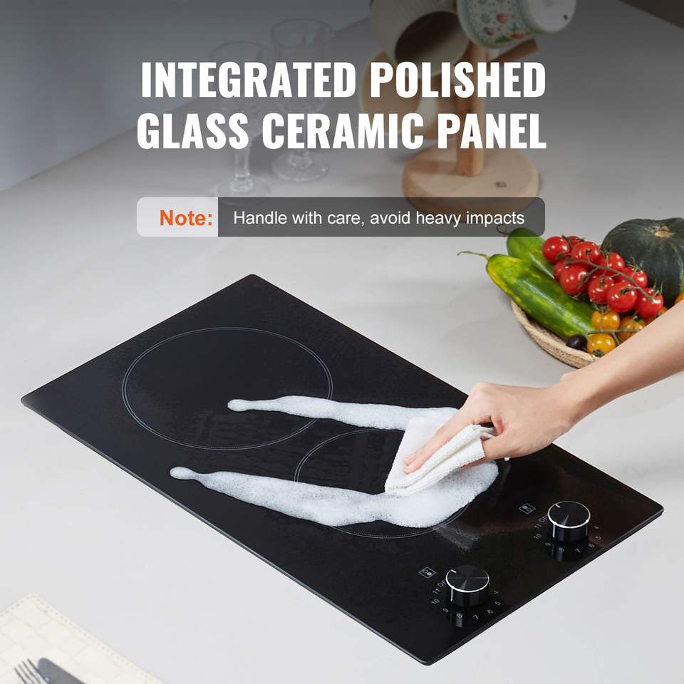 Placa de Cocción Eléctrica Integrada de 12 Pulgadas y 1800W, Estufa de Inducción de 2 Quemadores con Panel de Vidrio Cerámico y Perillas, Placa de Cocción Radiante