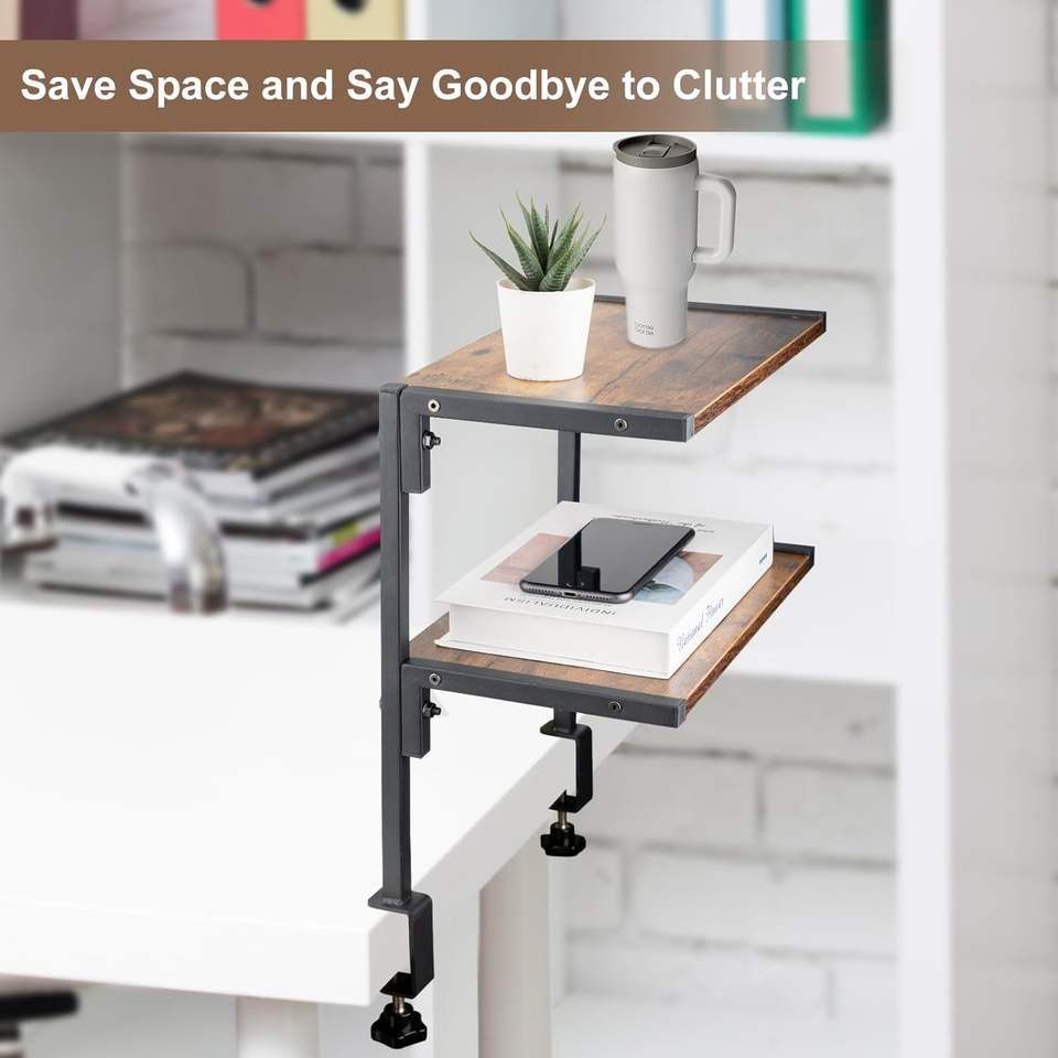 Abrazadera de 2 niveles de 12 pulgadas en el organizador de escritorio por encima o por debajo del estante de almacenamiento de escritorio para accesorios de mesa