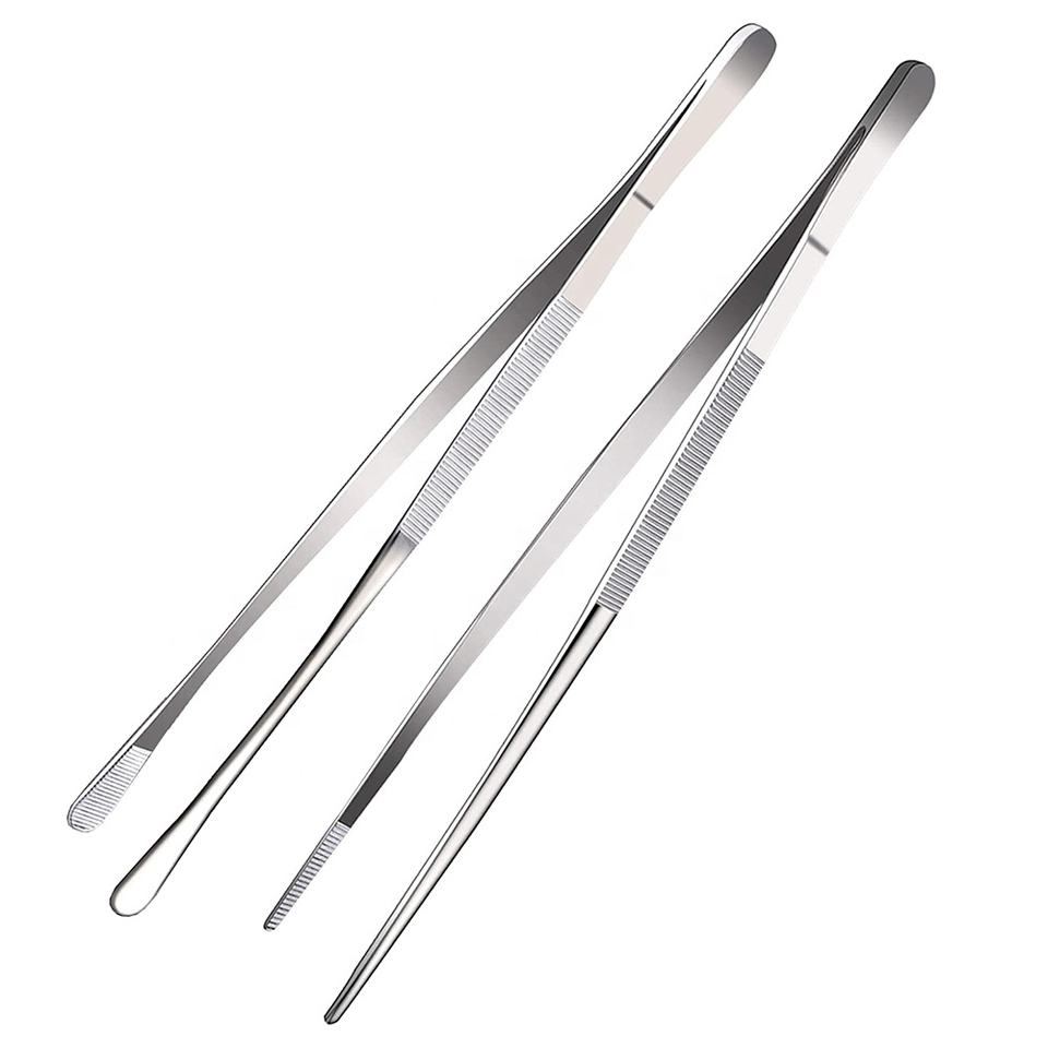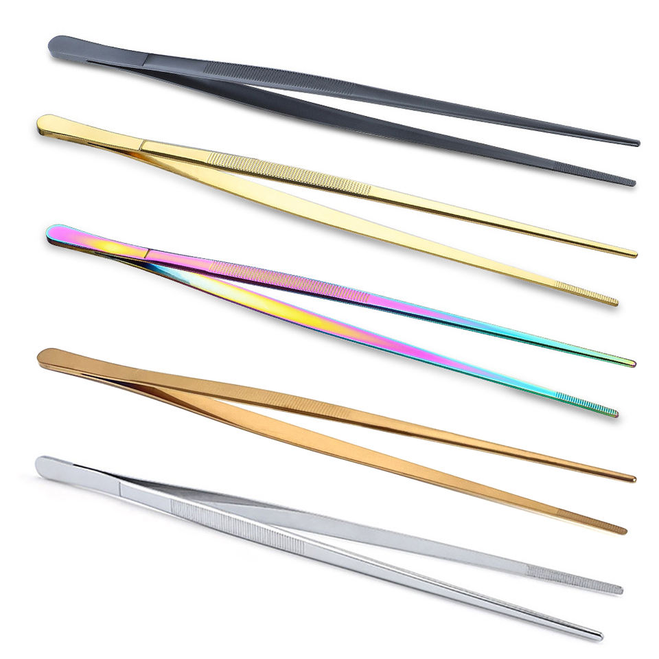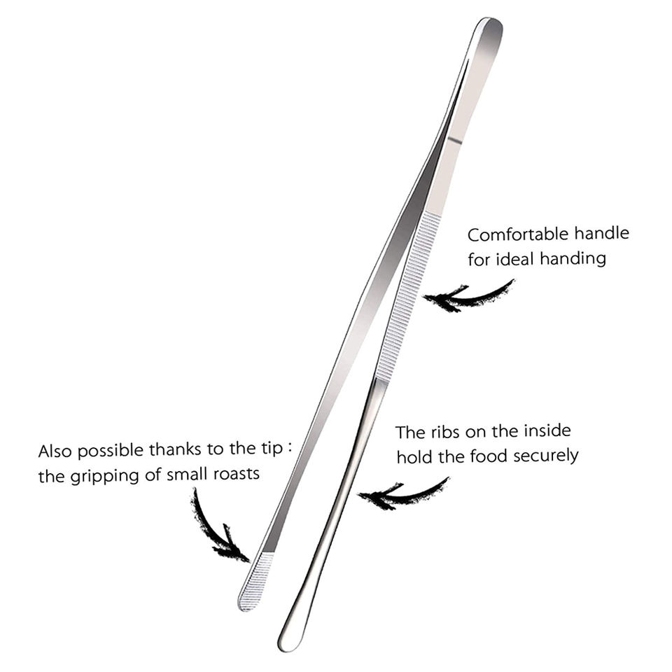 Pinzas de Cocina de Acero Inoxidable de 12 Pulgadas, con Puntas Dentadas Antideslizantes, Herramienta de Precisión para Barbacoa, Cocina y Decoración de Alimentos
