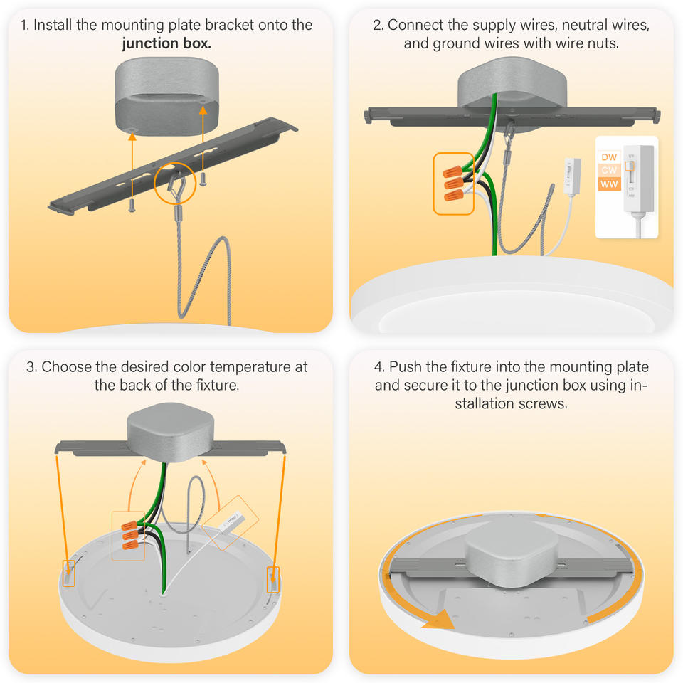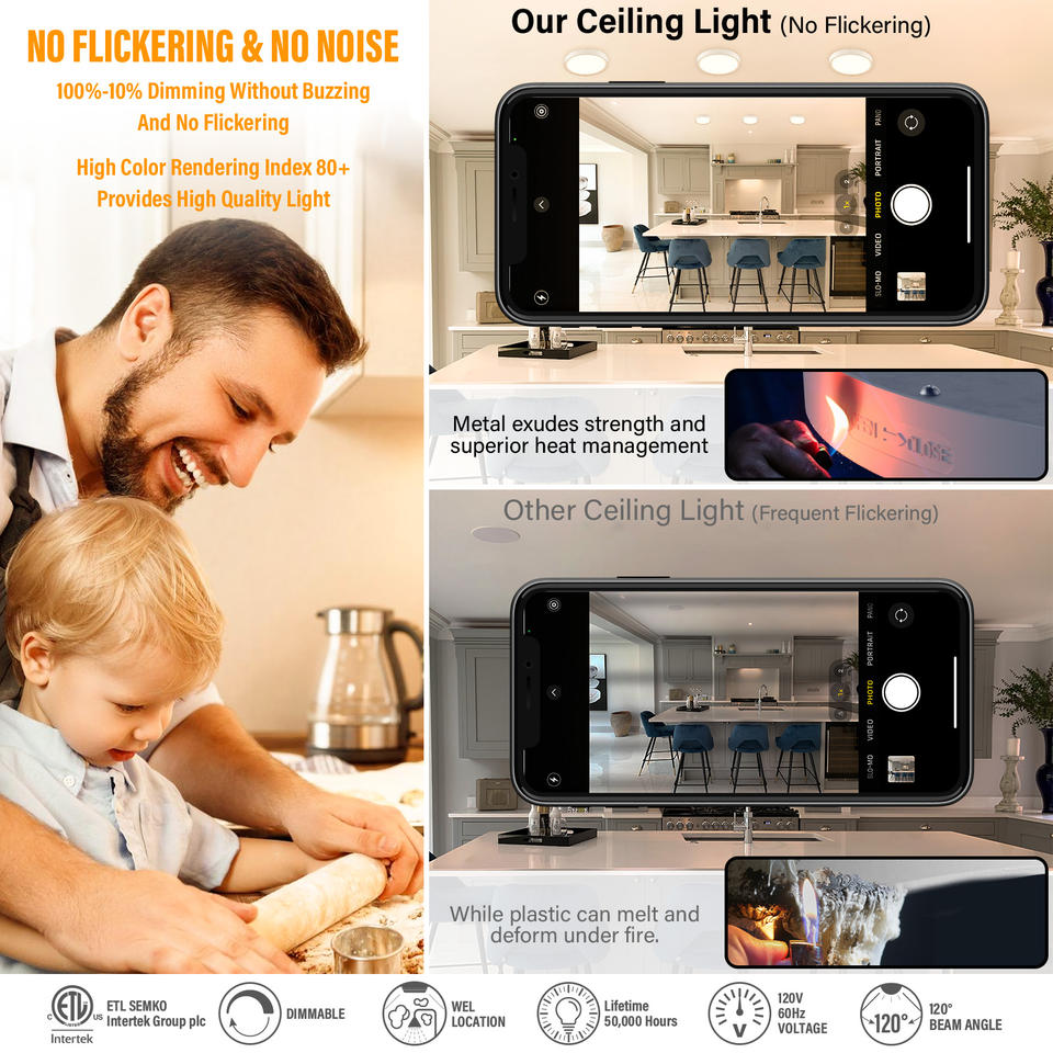 Lámpara de Techo LED Plana de 12 Pulgadas para Montaje en Superficie, para Caja J, Iluminación Lateral, 120 VCA, 25 W, 2000 LM, CRI90