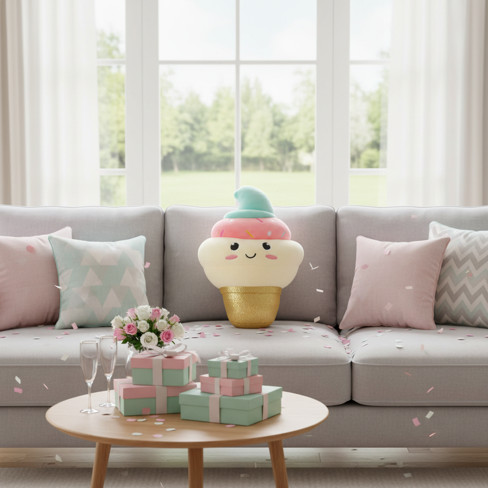 Cojín de Lujo de 12 Pulgadas con Diseño de Helado Rosa, Impresión Digital Moderna, Modelo NYFY-1238, MOQ 100, para Cumpleaños/Bodas