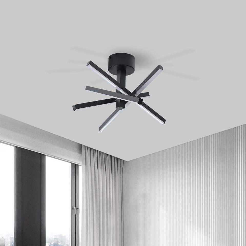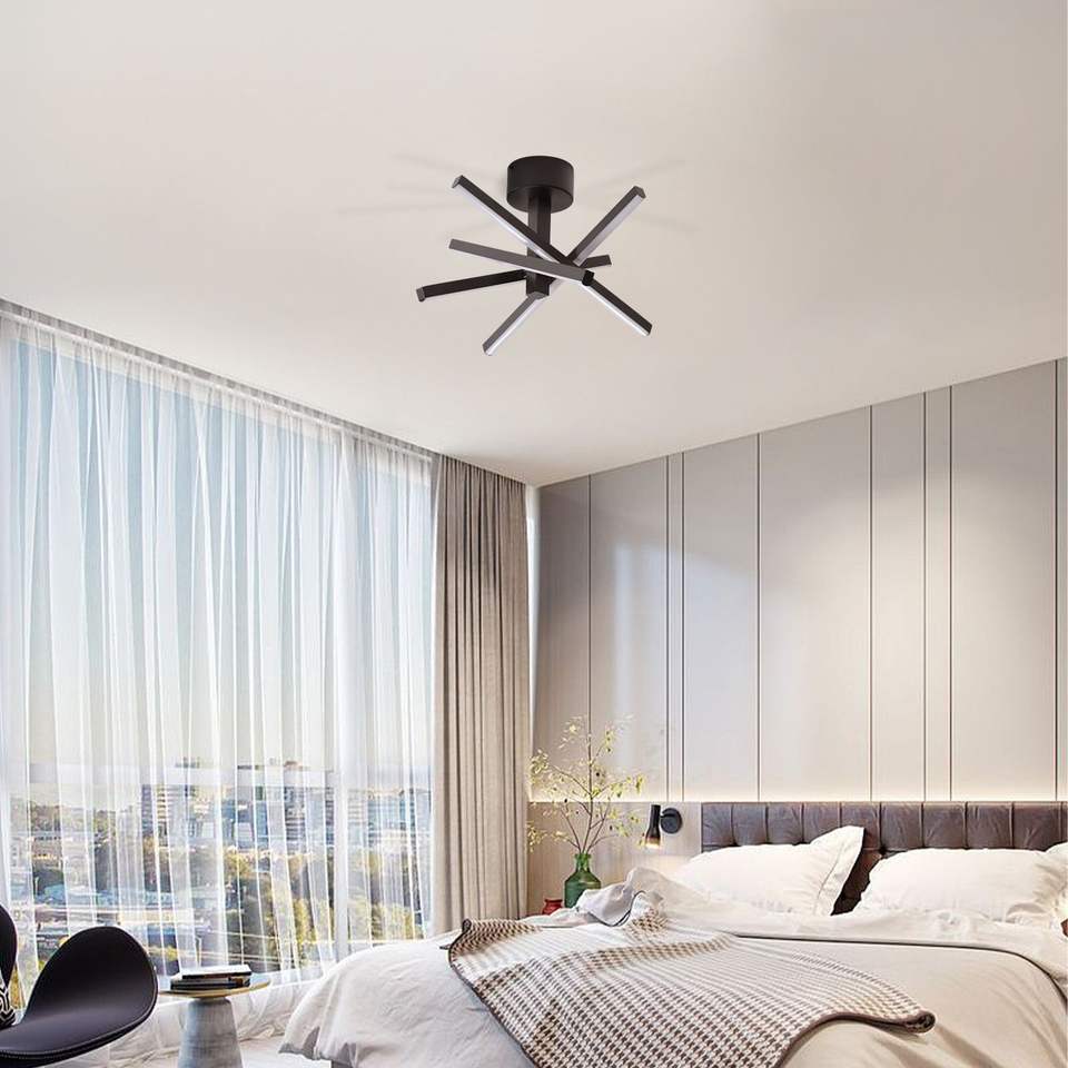 Lámpara de Techo LED Moderna de 12 Pulgadas con Diseño Geométrico de Estrella, Acabado Negro, para Sala de Estar, Dormitorio o Pasillos