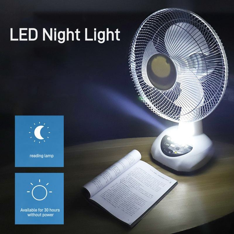 Ventilador de mesa recargable solar portátil de 12 pulgadas con función de Banco de energía Ventilador de mesa de rotación Usb con lámpara Led para el hogar