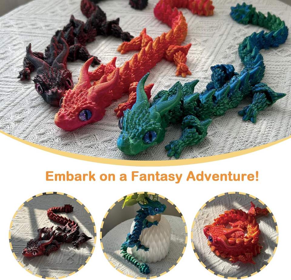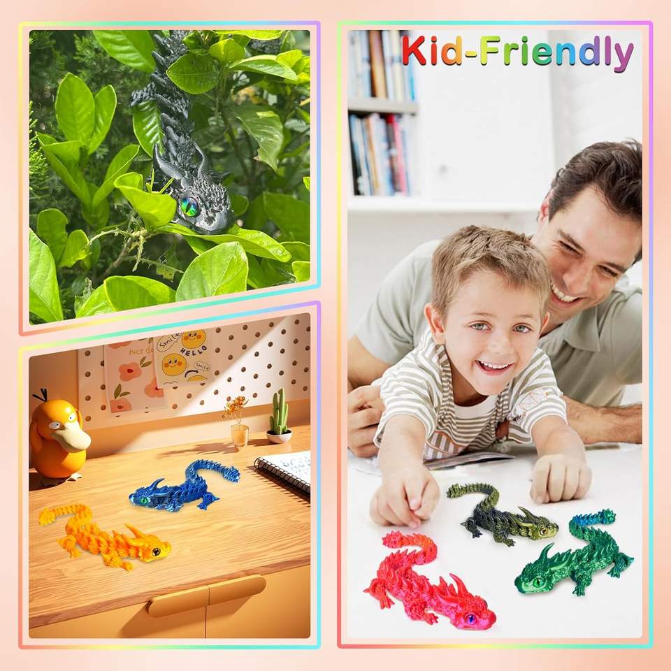Juguete Antiestrés de Dragón Impreso en 3D de 12 Pulgadas, Rojo y Negro, con Ojos Vívidos, Flexible y Articulado, Decoración para Escritorio Ejecutivo, para Hogar y Oficina, Hecho de Plástico