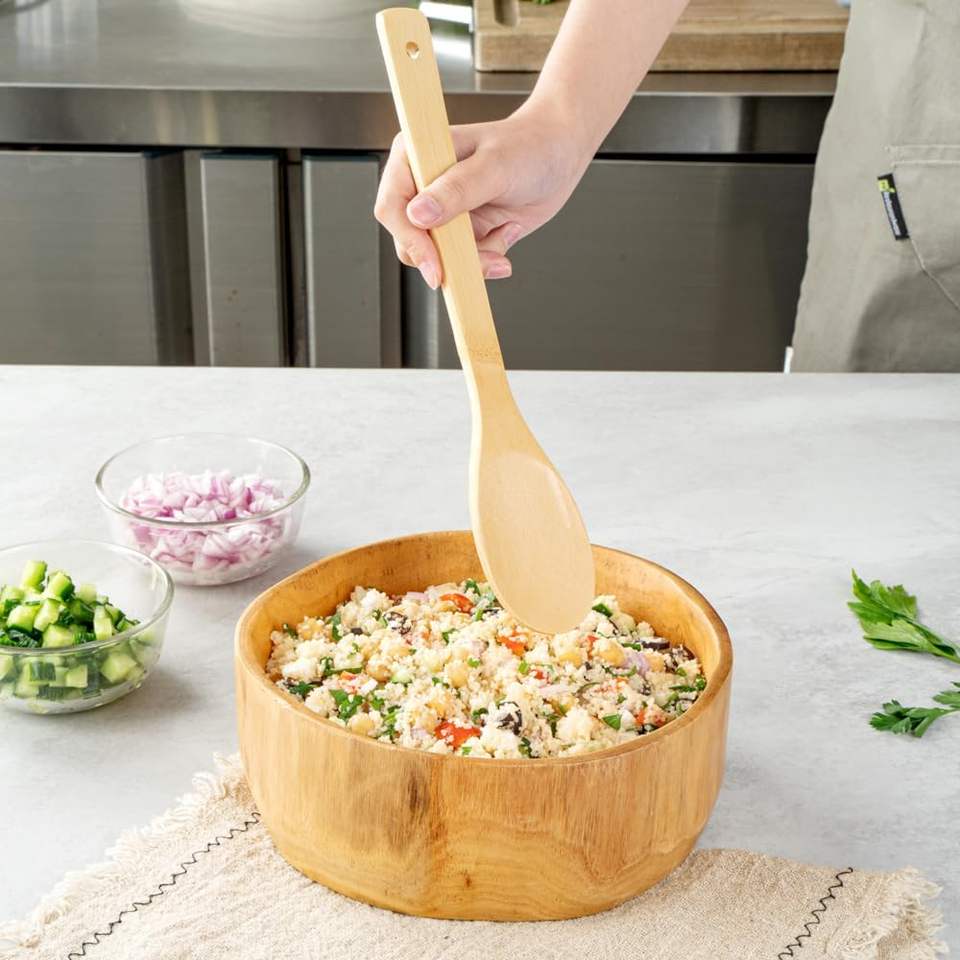 Cuchara para servir de 12 pulgadas, 1 cuchara de madera resistente para cocinar, utensilios de cocina antiadherentes utensilio para, mezclar, revolver o servir, bambú natural