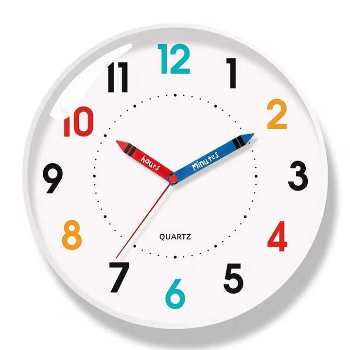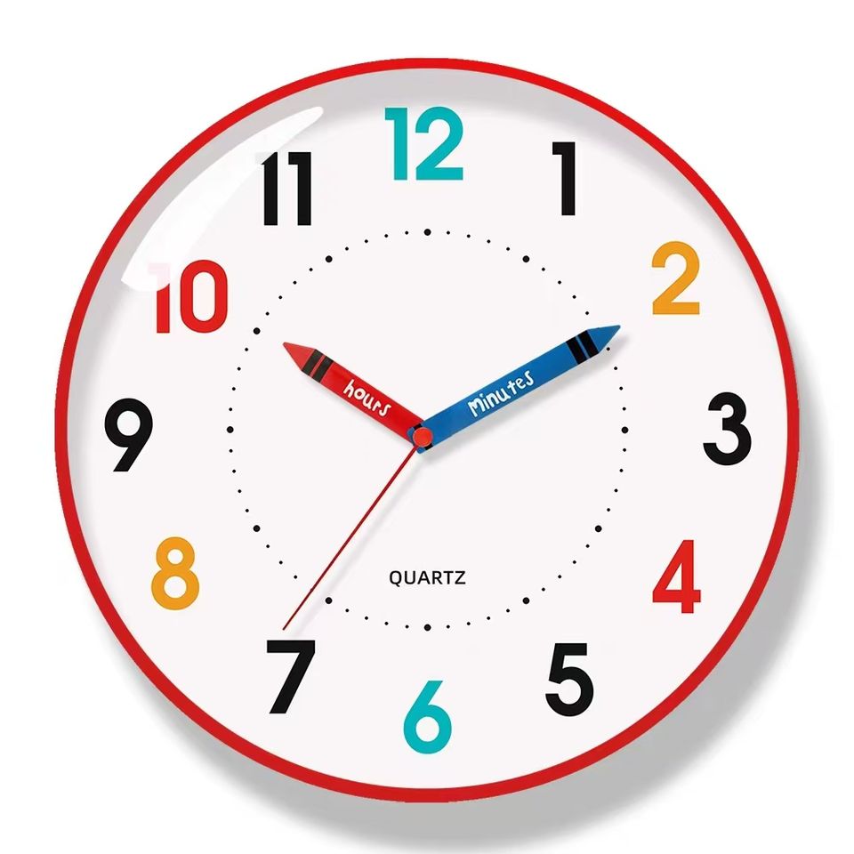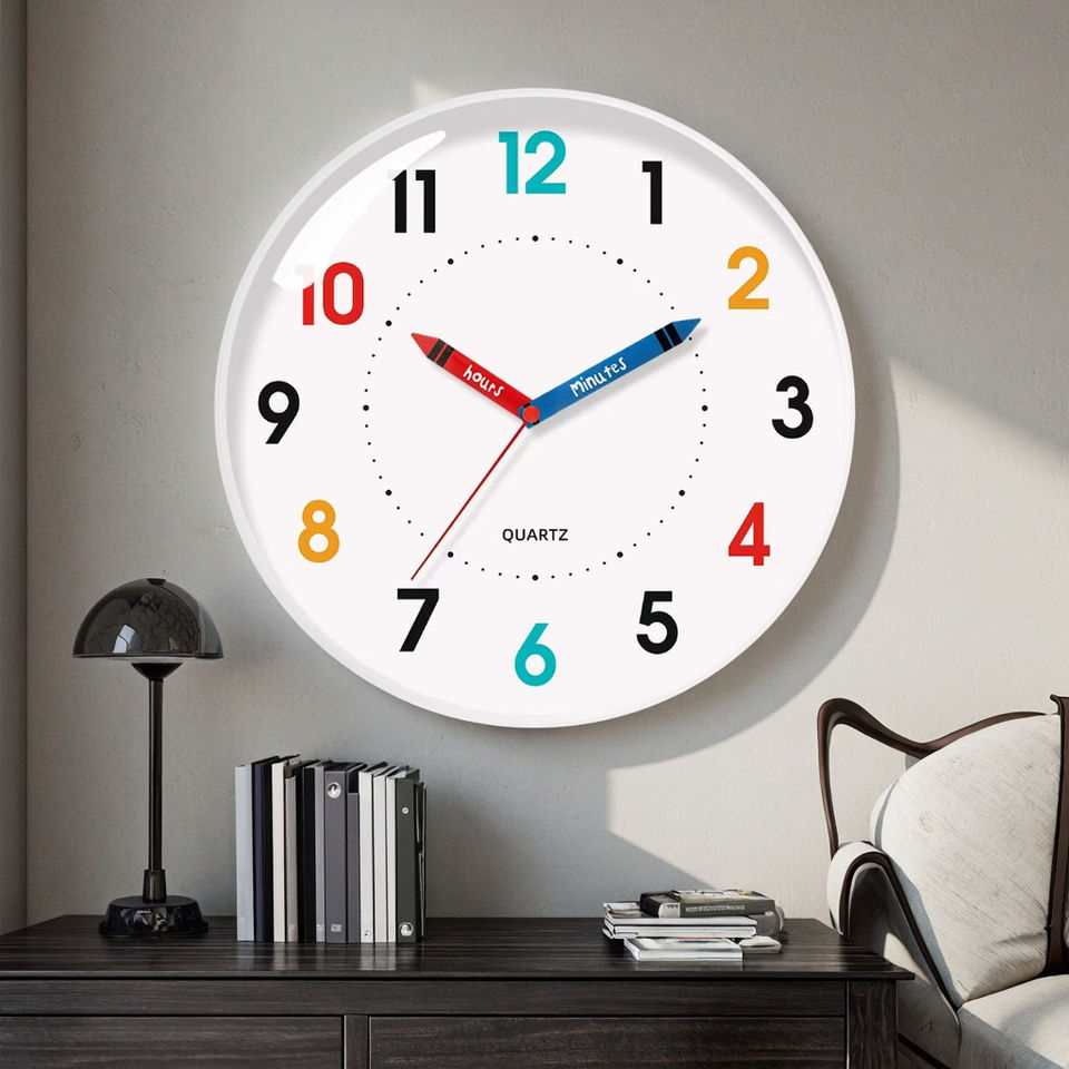 Reloj de Pared Analógico de Cuarzo de Plástico de 12 Pulgadas, Silencioso, Educativo, Infantil, de Colores, con Agujas, Personalizable para Niños
