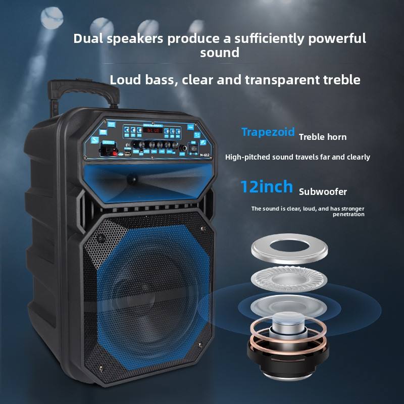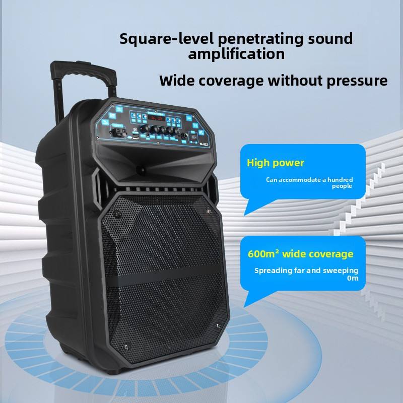 Altavoz Cuadrado de 12 Pulgadas para Baile, Micrófono Inalámbrico para Exteriores, Alta Potencia 10-30W, Control Remoto, Batería Recargable, Móvil