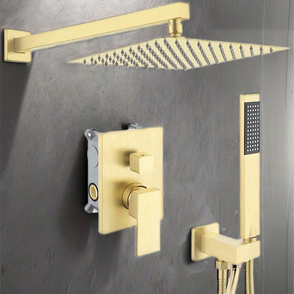 Grifo Mezclador Moderno Cuadrado de Latón Plateado de 12 Pulgadas con Monomando, Ducha de Lluvia y Ducha de Mano, Montado en Pared, Accesorios Completos para Baño con Barra Deslizante y Cerámica