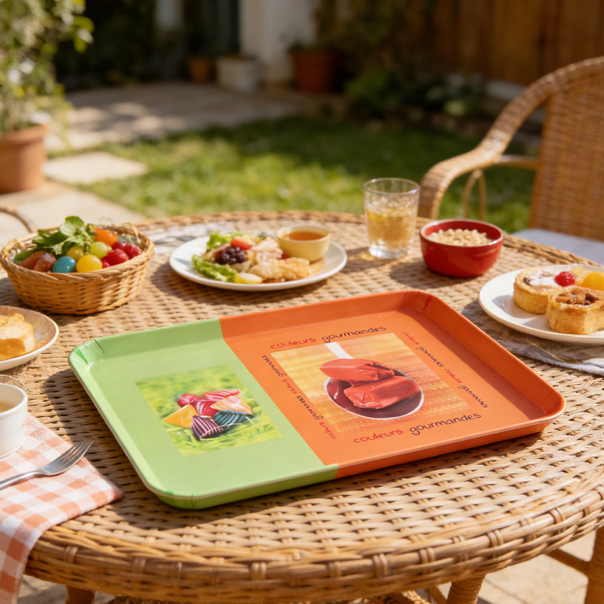 Bandeja de melamina de 30x21 cm ideal para desayuno, merienda y uso diario