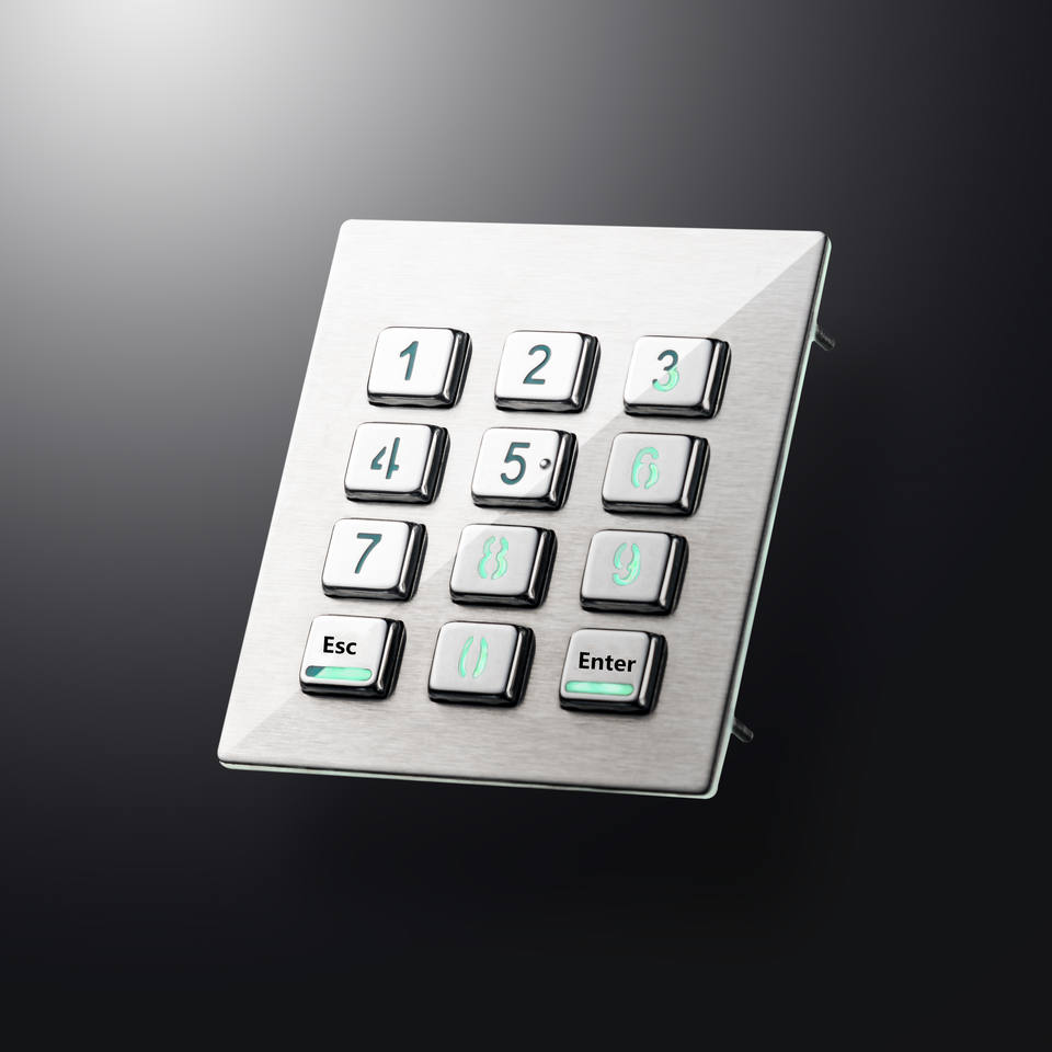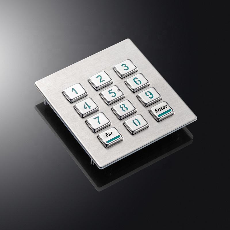 Teclado Retroiluminado de 12 Teclas 3x4 # Teclado Numérico Metálico de Acero Inoxidable 304, Resistente al Vandalismo IP54 IK07, Certificado CE/FCC, para Uso Industrial