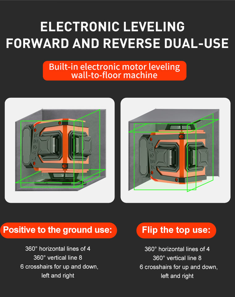 Nivel láser de rotación automática verde de 12 líneas Líneas verticales y horizontales industriales para proyectos de bricolaje