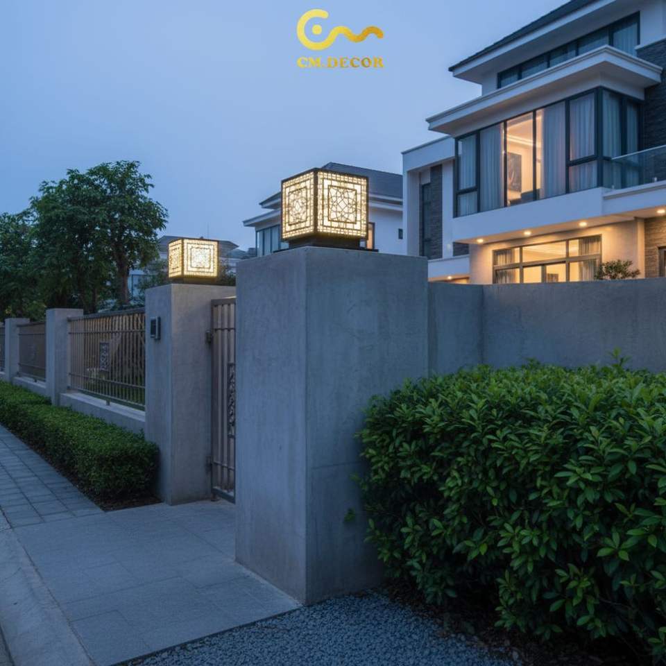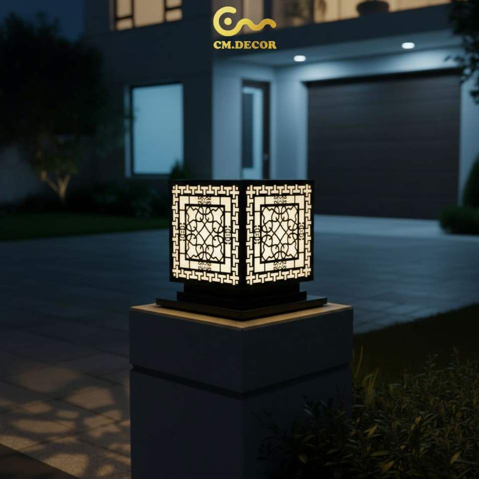 Lámpara de Poste LED Geométrica Moderna de 12 Pulgadas, Lámpara de Pilar de Acero Negro Impermeable para Villa, Iluminación Exterior Cálida de 220V