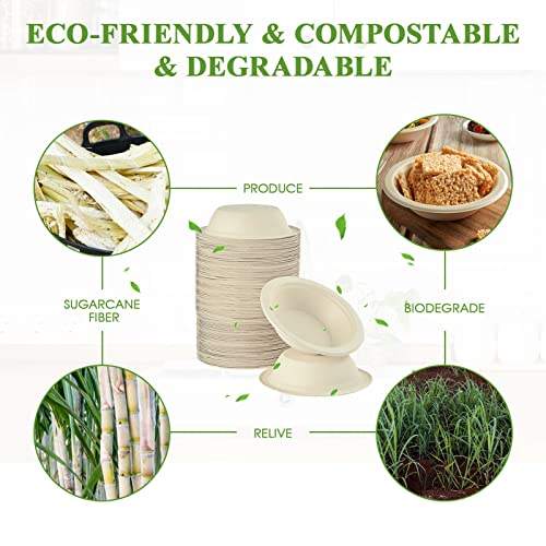 Tazones de papel de bagazo desechables y compostables de 12 oz, ecológicos, resistentes, impermeables, de grado alimenticio, para fideos y aperitivos a granel