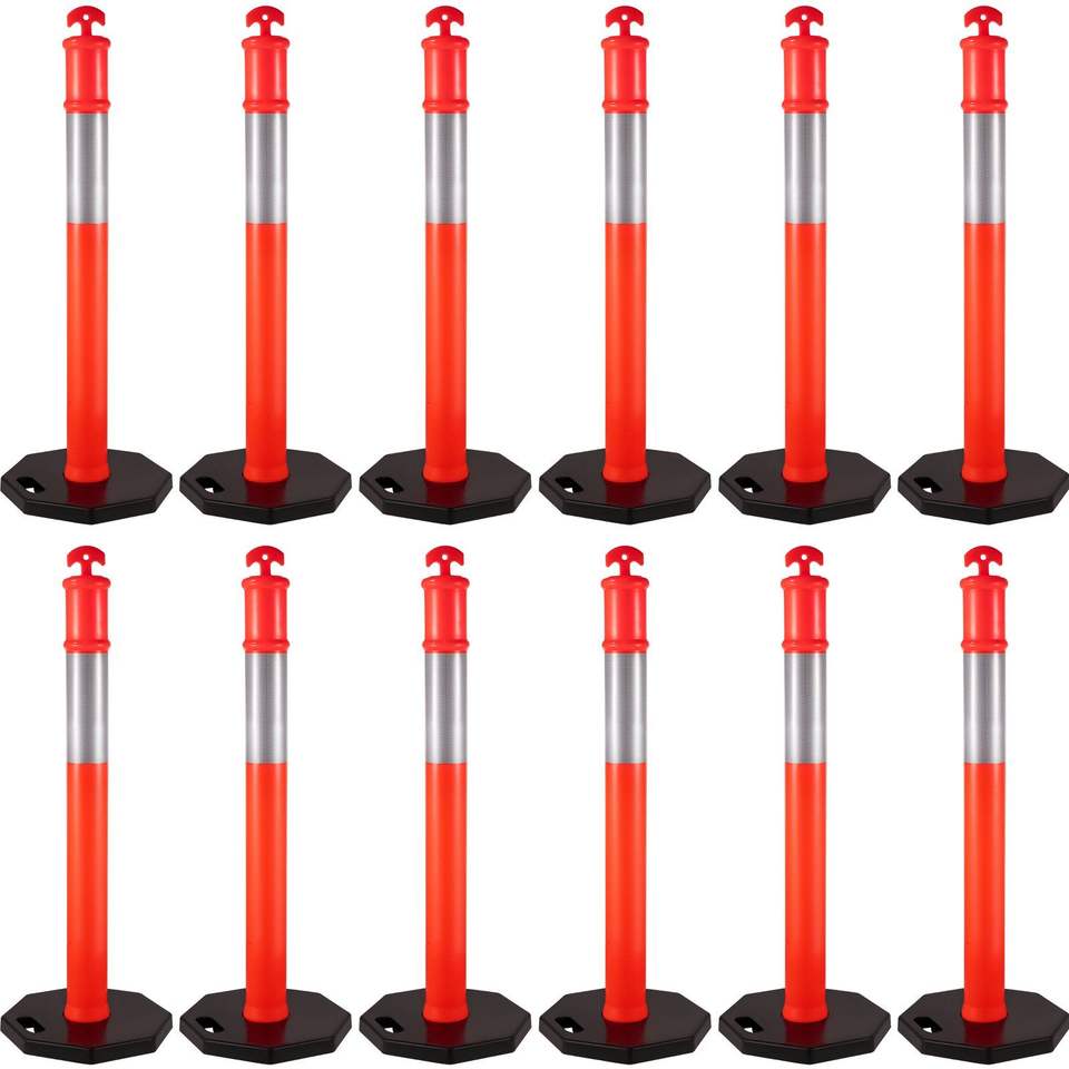 Paquete de 12 Postes Delimitadores de Tráfico de 44 Pulgadas con Banda Reflectante de 10 Pulgadas, Kit de Conos de Goma para Señalización de Tráfico, Productos de Advertencia Vial