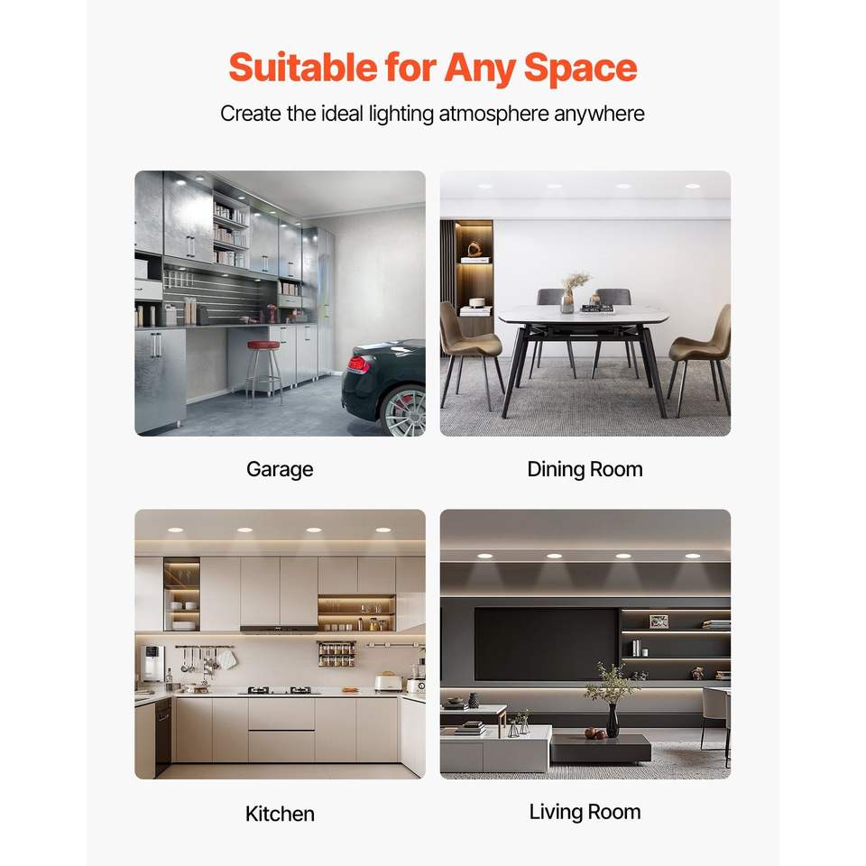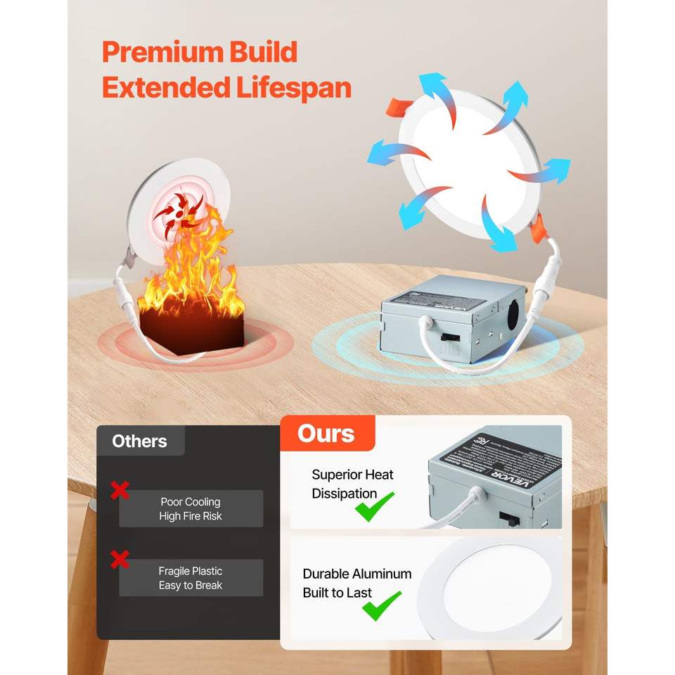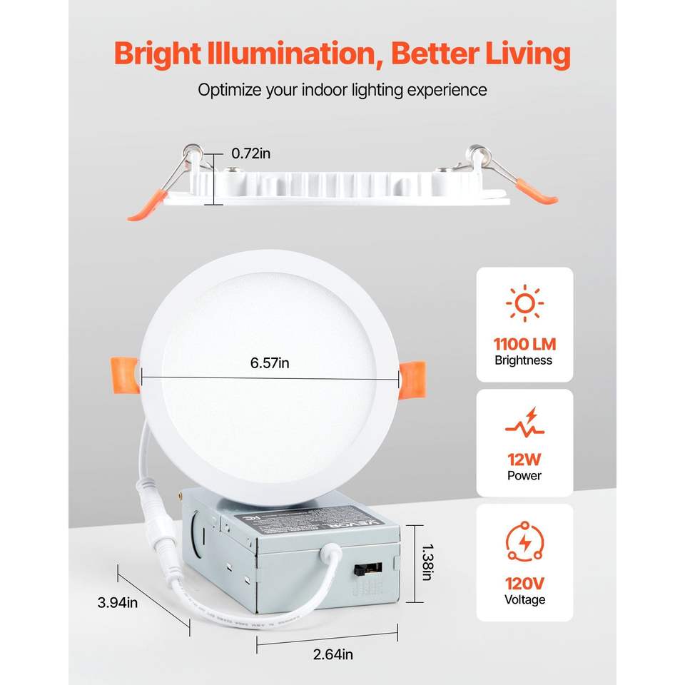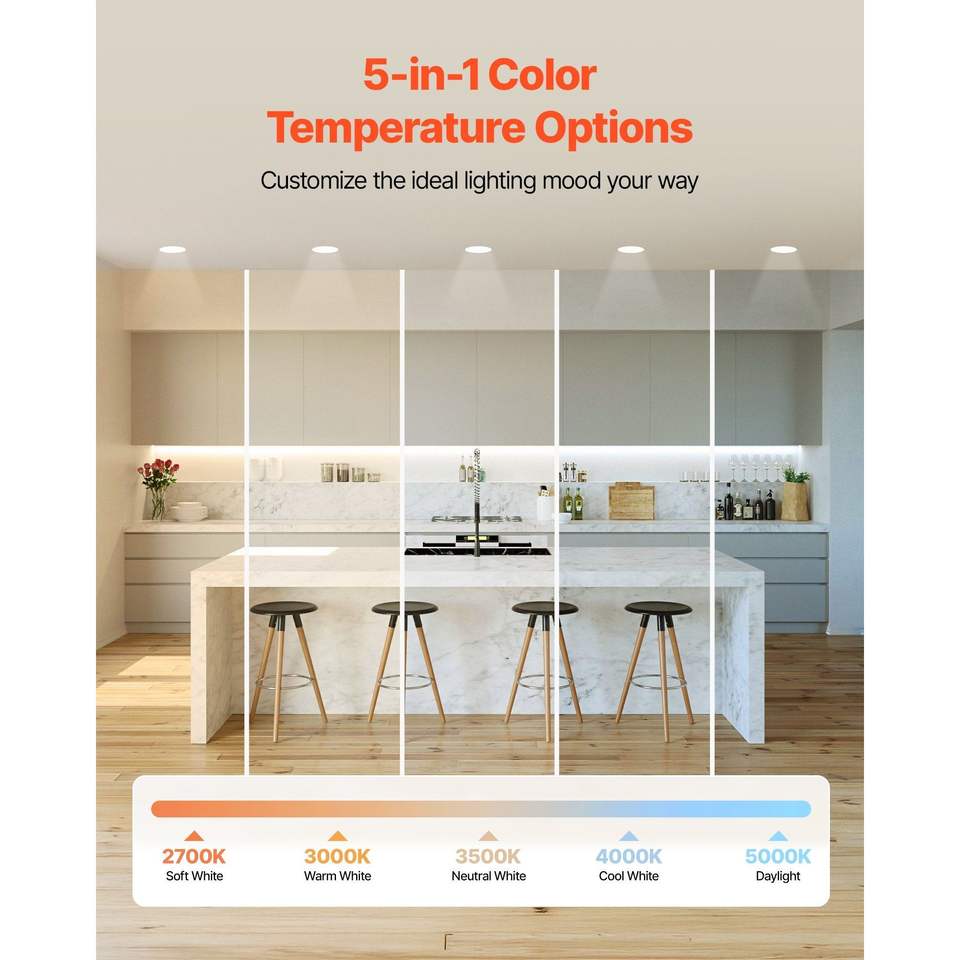 Paquete de 12 luces LED empotrables de techo de 6 pulgadas, 5CCT, tipo wafer sin carcasa, selección de 2700K/3000K/3500K/4000K/5000K, conector sin carcasa