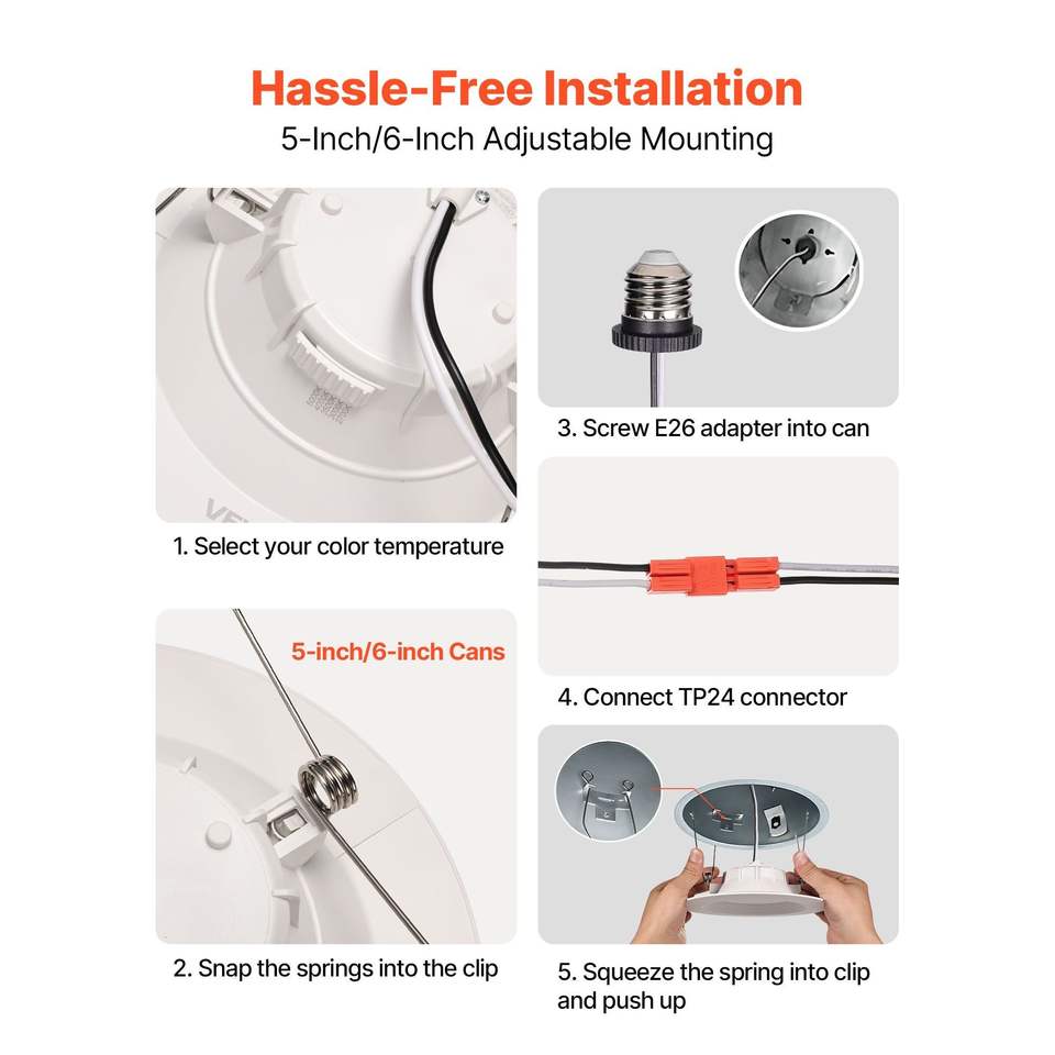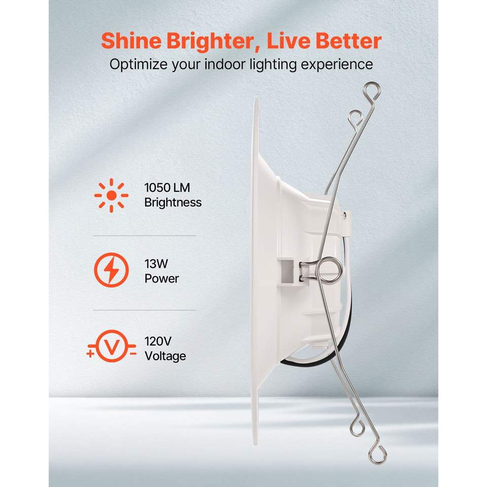 Paquete de 12 Focos LED Empotrables de 5/6 Pulgadas, 1050 LM, 13W, 120V, Temperatura de Color Seleccionable 5CCT 2700K/3000K/3500K/4000K/5000K