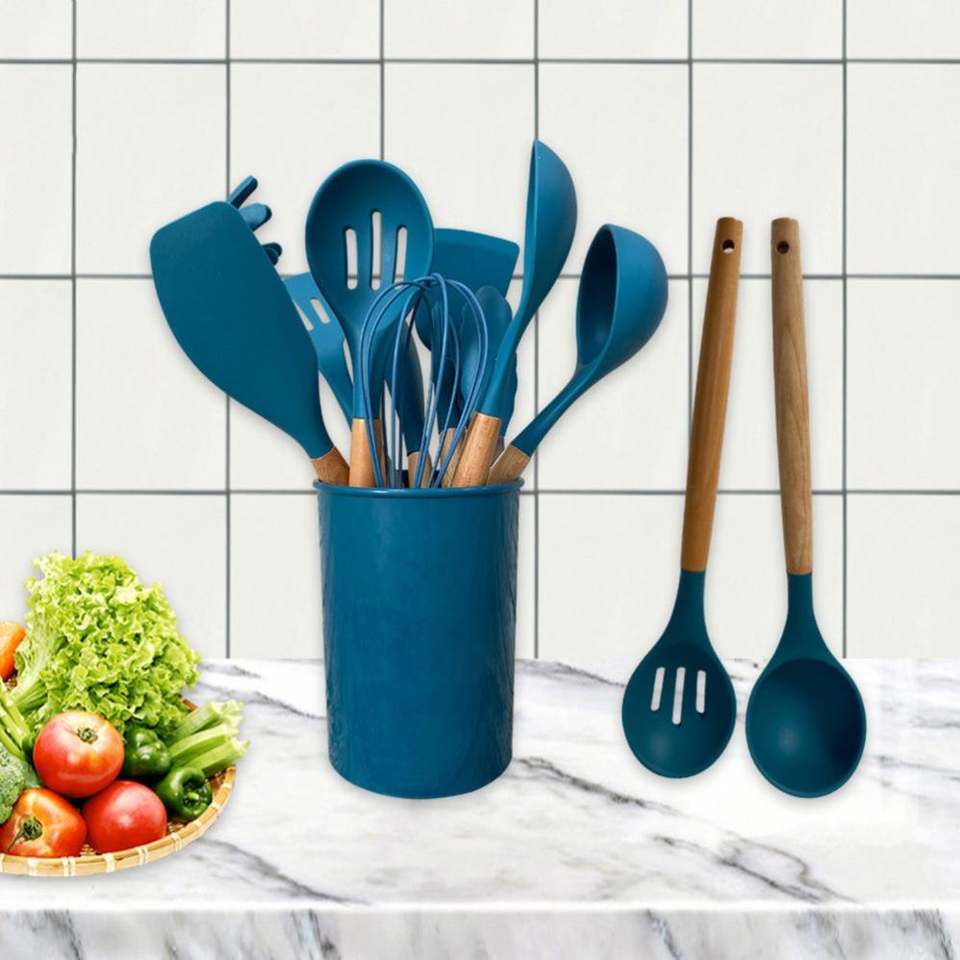 Juego de 12 Utensilios de Cocina Fungun, Color Caqui, Resistentes al Calor, de Silicona, para Utensilios de Cocina Antiadherentes