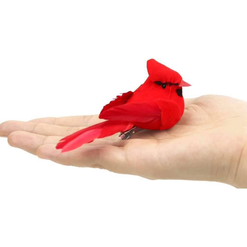 12 Piezas de Mini Pájaros Cardenales Artificiales Rojos para Decoración de Árboles de Navidad, Coronas y Adornos Navideños