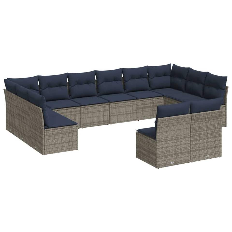 Juego de sofá de patio de ratán polivinílico gris de 12 piezas con cojines Colección duraderos de muebles para exteriores