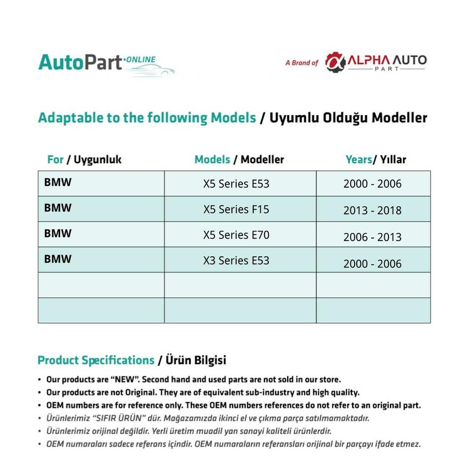 Kit de reparación de techo solar de 12 piezas para BMW X3 Series E83 (envío desde el fabricante de Turquía) Código de producto: