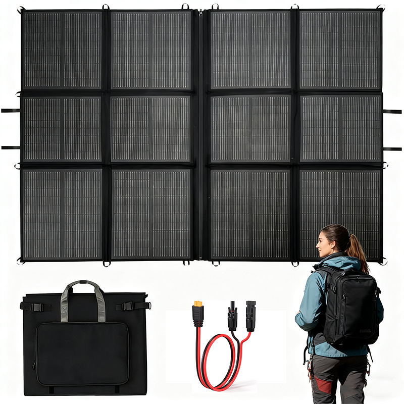 Paneles Solares Monocristalinos Plegables Portátiles de 440W, 2*220W, 25% de Eficiencia, IP65 Impermeables, para Suministro de Energía en Campamentos y Autocaravanas Fuera de la Red