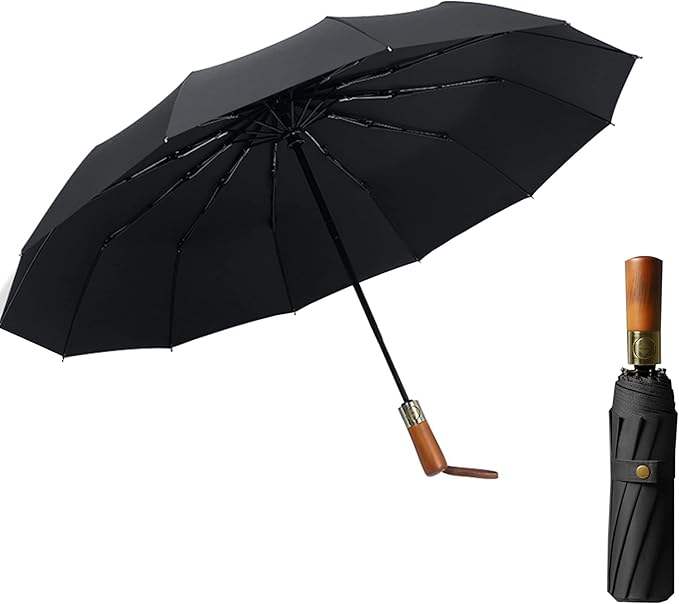 Name:Black Coated UV Fully-Automatic 3 Fold wood handle automatic Umbrella