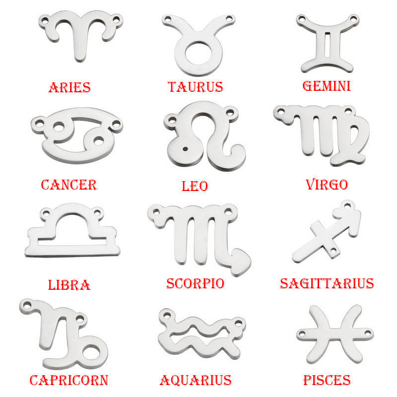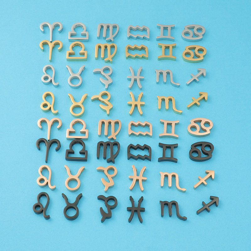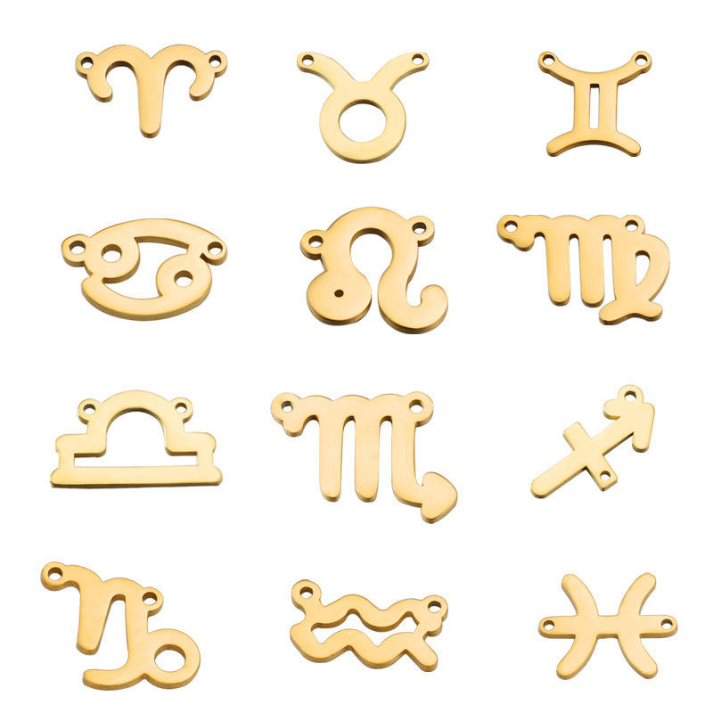 12 dijes de acero inoxidable con signo del zodiaco | Colgantes de constelaciones chapados en oro de 18 quilates para hacer collares y pulseras de joyería DIY