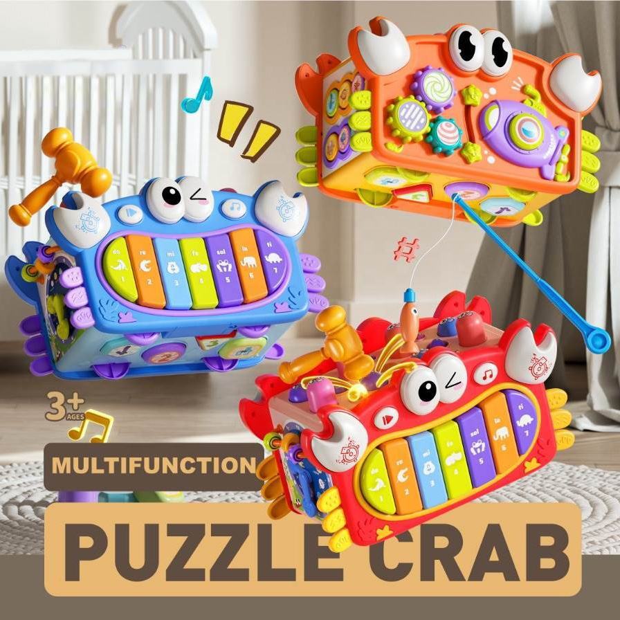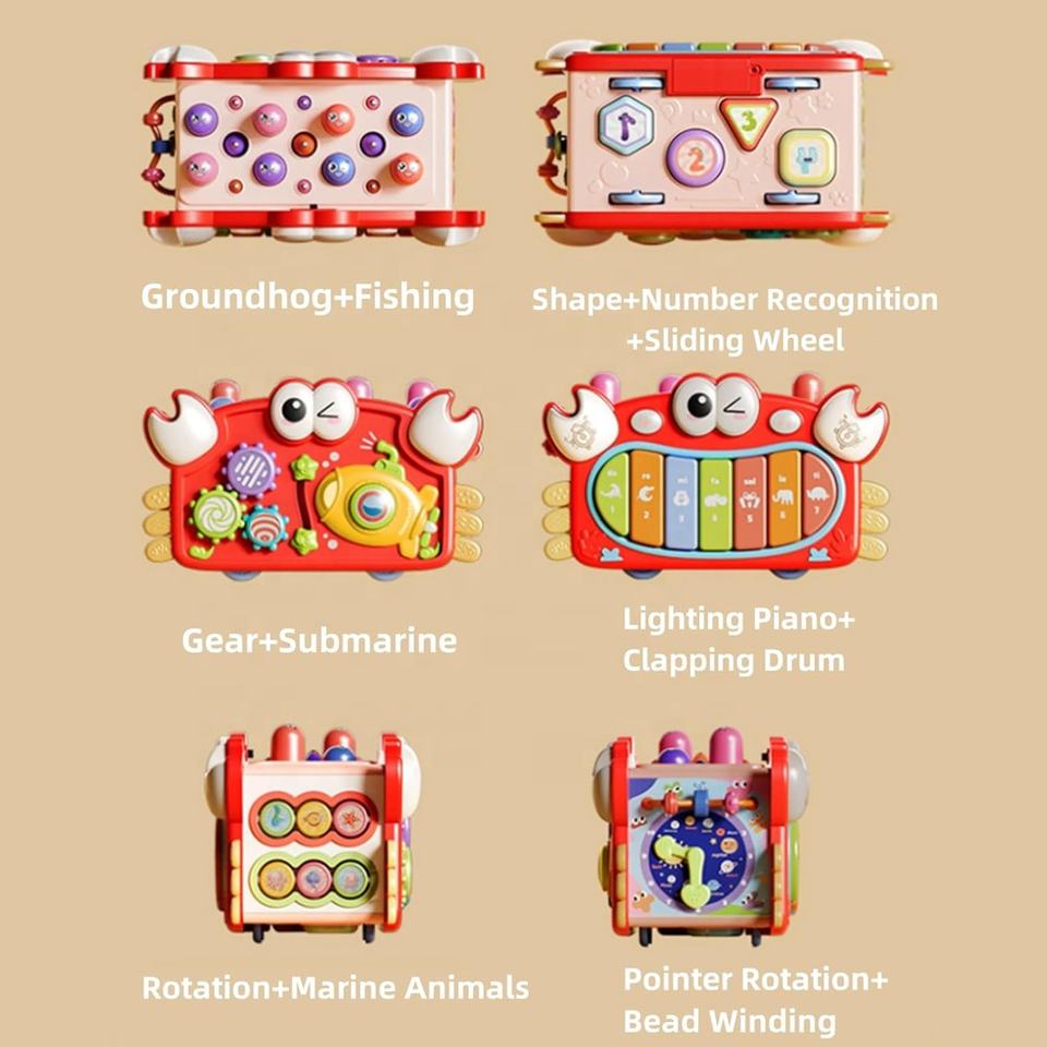 Diseño: cubo de actividades para bebés:Nuestro juguete Montessori con forma de cangrejo ofrece 12 formas de aprender y jugar