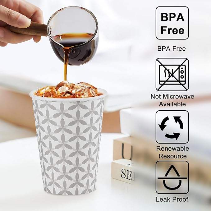 Vasos Desechables para Café de 12 oz con Asa para Bebidas Calientes y Frías, para Cafeterías, Oficinas, Restaurantes, Vasos Desechables para Café
