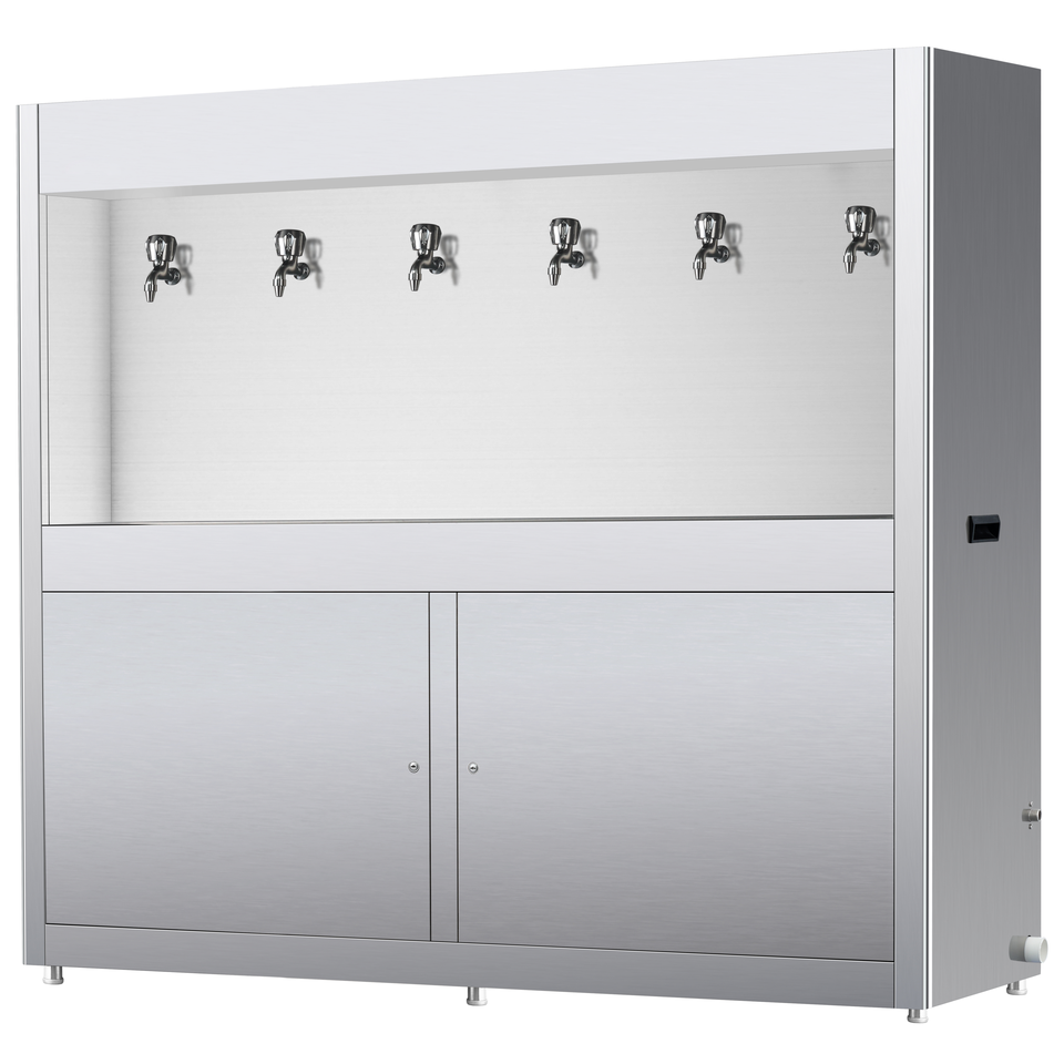 Tanque de agua fría de alta capacidad de 120 litros, 6 grifos, ventilador, dispensador de agua de refrigeración con sistema de filtración UF para fábricas