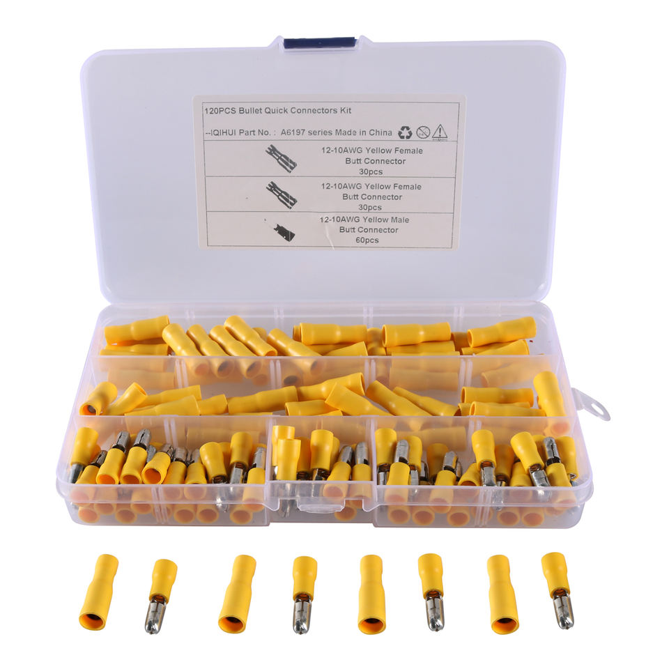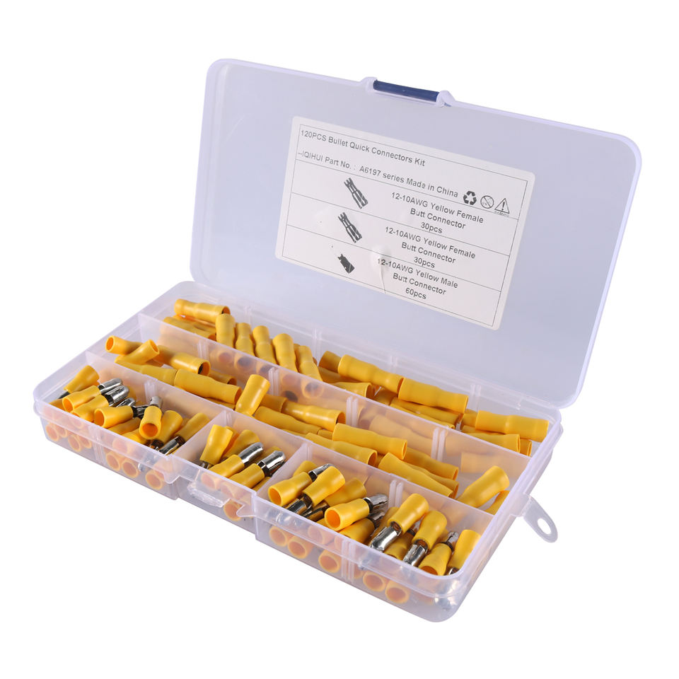 Kit de conectores de terminales de engarce amarillo, 120 unidades, precio al por mayor en BAJUTU para coches, Shopify, Ebay, superventas de Wish