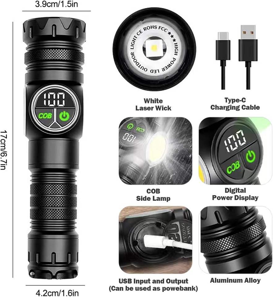 Característica:Impermeable, enfoque ajustable, Recargable, Luz LED con Zoom