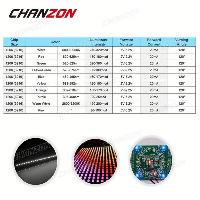 1206 3216 SMD LED Kit de diodo emisor de luz Lámpara SMT Chip de cuentas Blanco cálido Rojo Verde Azul Amarillo Naranja UV Rosa 3V 20mA