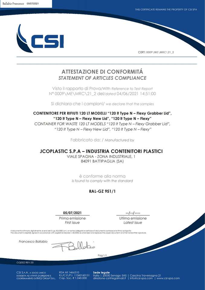 Marca:JCOPLASTIC SPA