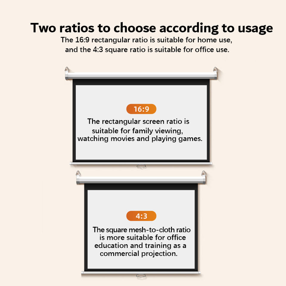Pantalla de Proyección Manual de 120 Pulgadas con Sistema de Autobloqueo / Pantalla de Proyección Desplegable para Montaje en Pared y Techo, Blanca Mate