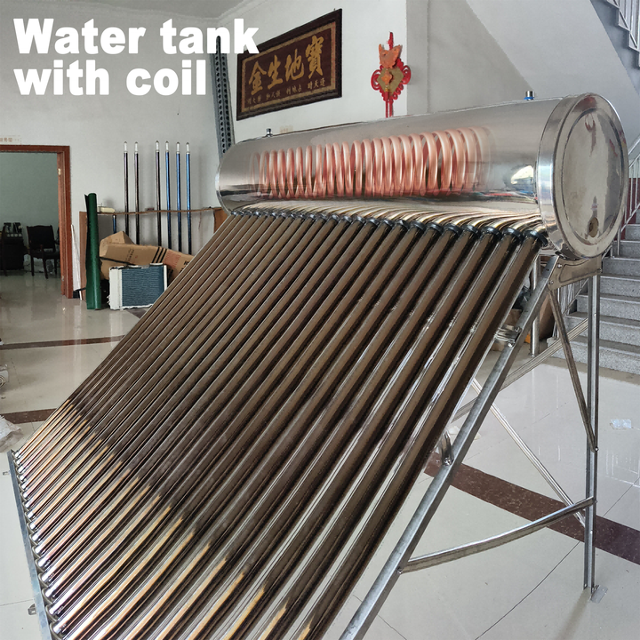 La fábrica china de 120l sin presión proporciona tubos de vacío de acero inoxidable, precio de calentador de agua Solar con sistema de bobina para uso doméstico