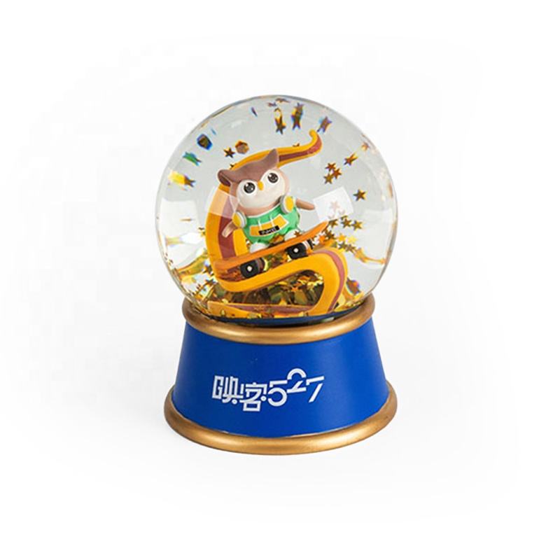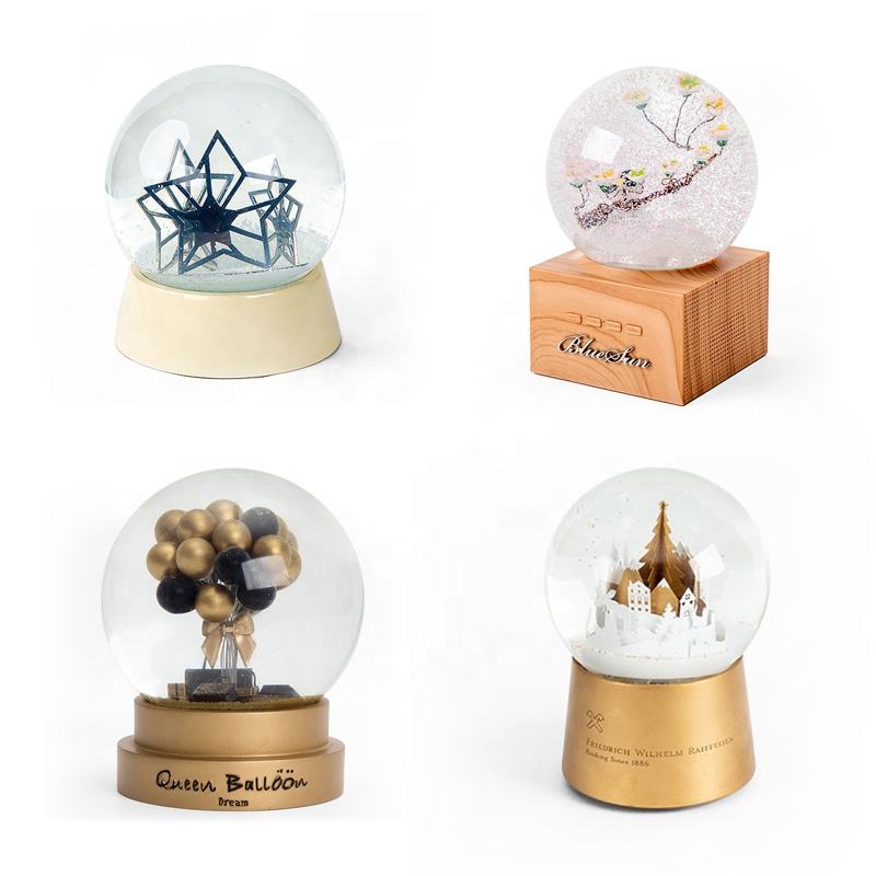 Globo de nieve personalizado con forma de logotipo, 120mm, cuentas de resina de cristal, música funcional, iluminación Led para niños, regalos
