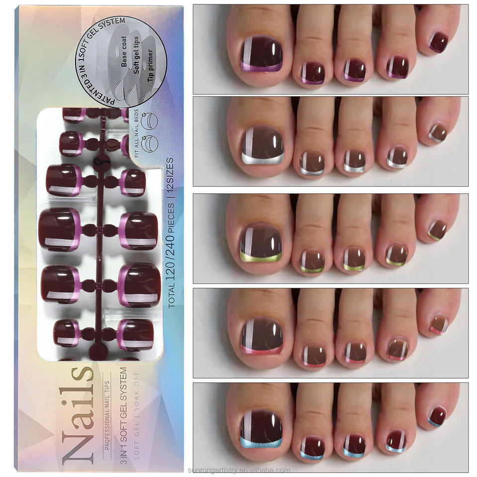 120 Uñas Postizas Francesas para los Pies, Uñas Artificiales con Brillo Nude, Uñas de Gel Suave, Juego de Uñas a Presión para los Pies
