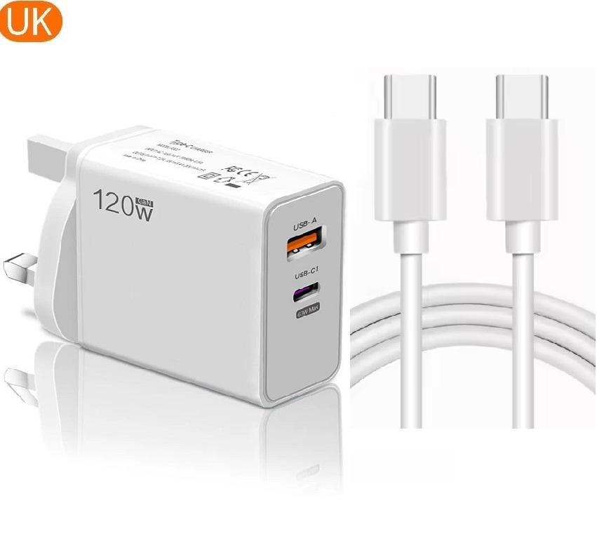 Adaptador rápido de 120W, cargador de pared + Cable PD, Puerto USB de W, Puerto USB, UE, EE. UU., Reino Unido, PD, cargador rápido de 25W para Iphone, Huawei, xiaomi
