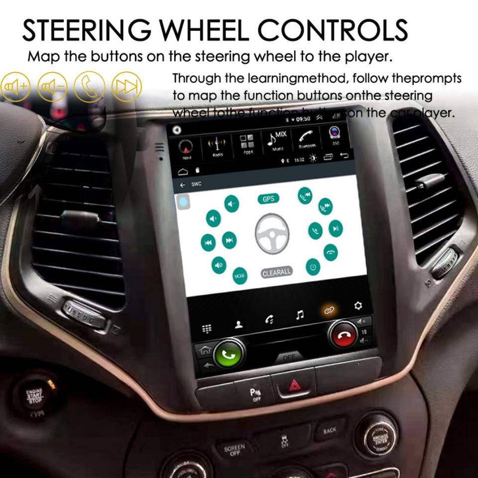 Radio con Pantalla Android Estilo Tesla de 128 GB, Navegación GPS para Jeep Cherokee 5 KL 2013-2018, Reproductor Multimedia Estéreo para Auto, Carplay