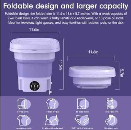 Mini Lavadora Plegable con Secador Giratorio para Ropa Interior, Calcetines para Bebés y Mascotas, 12L, 8L, 6L