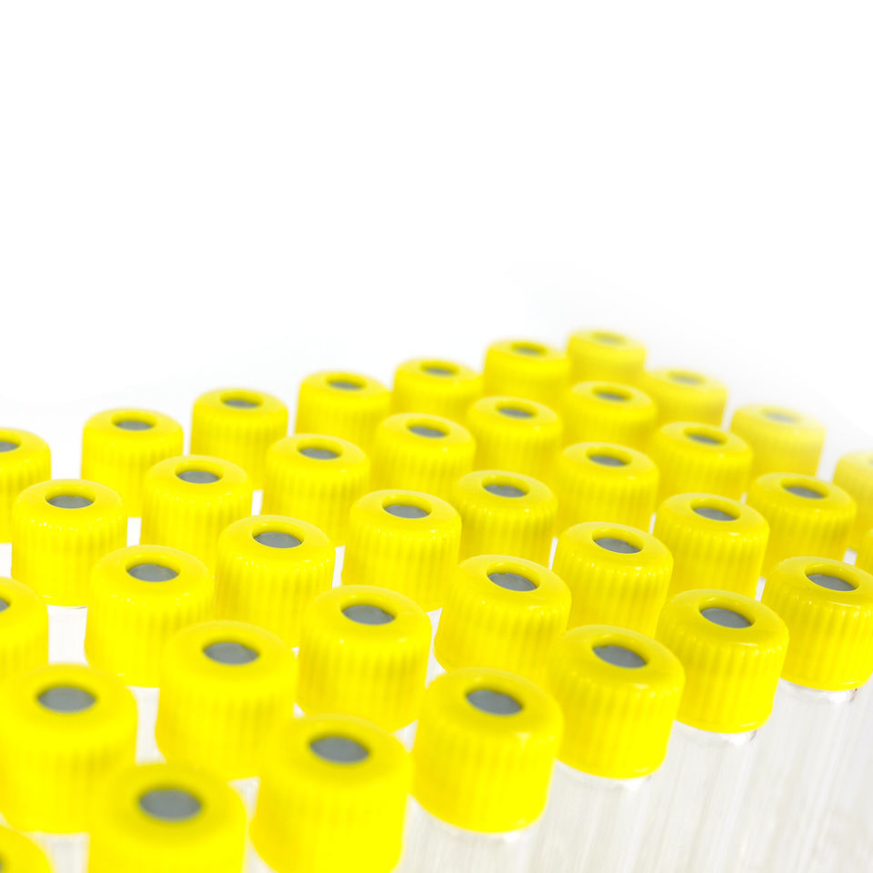 Tubo de prueba de aliento de tornillo de 12ML utilizado para kits de prueba SIBO. Fondo plano. Vial recubierto. No evacuado.