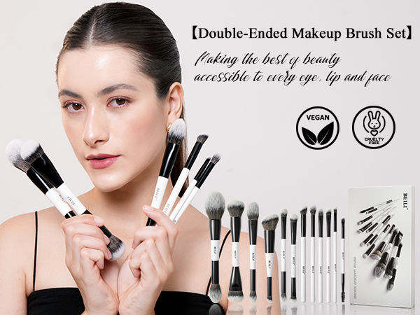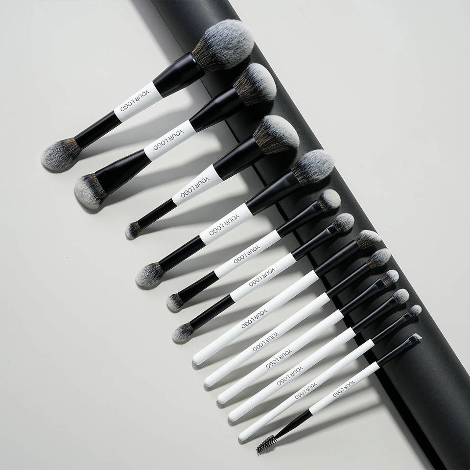 Juego de 12 Brochas de Maquillaje de Doble Punta de Primera Calidad con Logotipo Personalizado, Brochas Cosméticas Veganas Profesionales de Alta Calidad