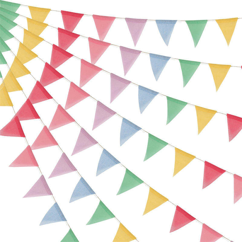 Banderas de banderines de colores, banderines de arpillera de imitación, decoración en colores pastel, 12 unidades