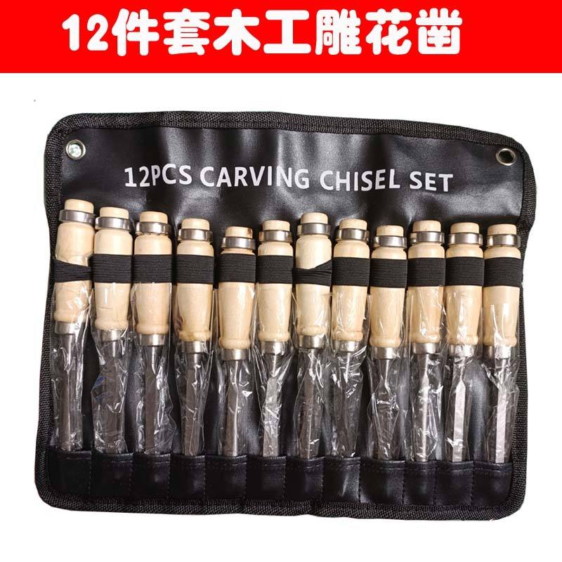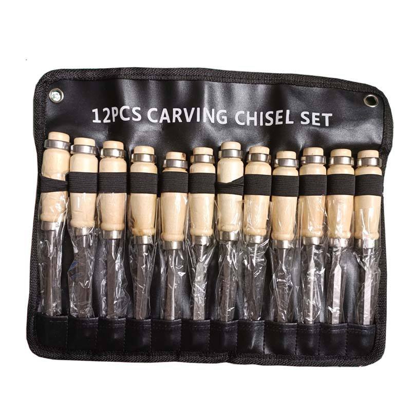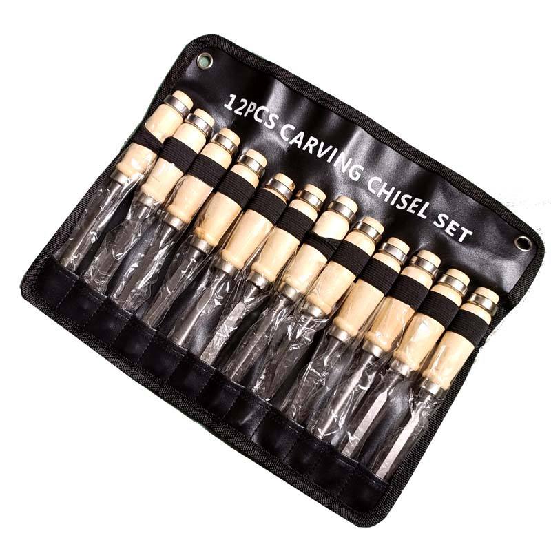 12Pcs Woodworking Carving Chisel Set Metric Round Shank Straight Tip Carpentry Tools