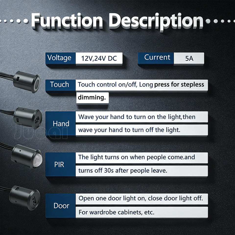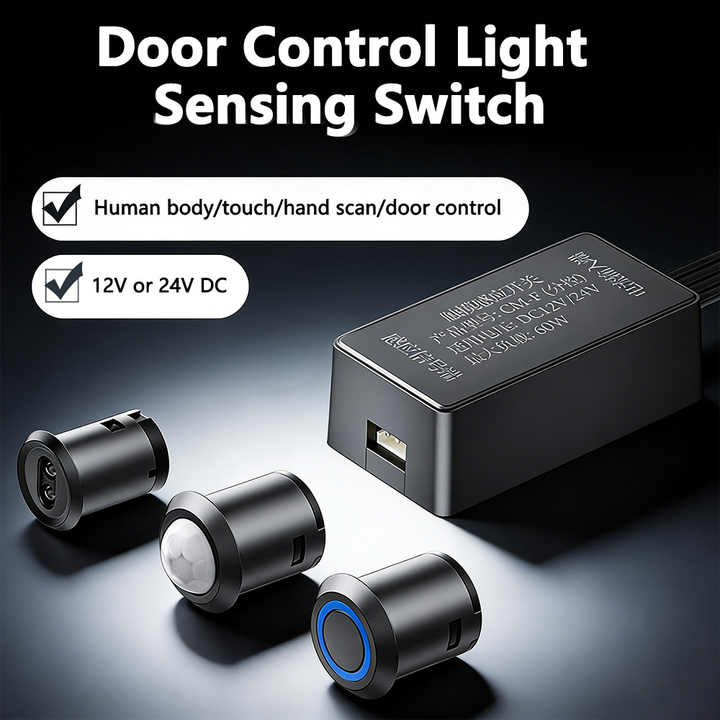 Interruptor Automático de Detección 12V/24V para Armario/Guardarropa, Táctil/Escaneo Manual/Regulable/Control de Puerta, Cierre Retardado por 30 Segundos